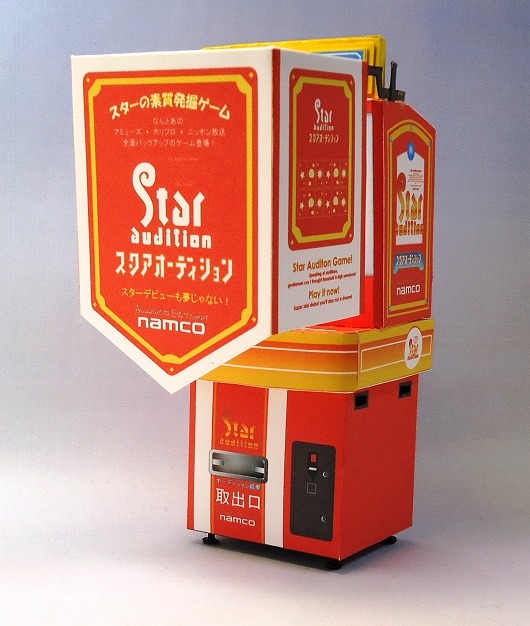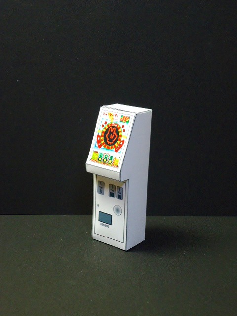 1/12 ギタージャム ゲームセンター 2012.06.202021.11.23 ナムコのギターモチーフの音ゲー。でも1/12のギター持ってなくてね……。 側面は何書いてあるのか分からなかったので適当。そのへんにあった手持ちのCDのタイトルを並べただけ。 ペパクラ歴2作目なので作りが粗い。大型の筐体なのでパーツも大きくざっくり組めるけど、大きいパーツの方が歪むし結構組むのは難しいよ(未来の自分からのアドバイス)。 ギターの代わりにそのへんに転がっていたリボルテックのベースでイメージ図。ギターはBECKのやつを昔よく見たので買っておけばよかった。